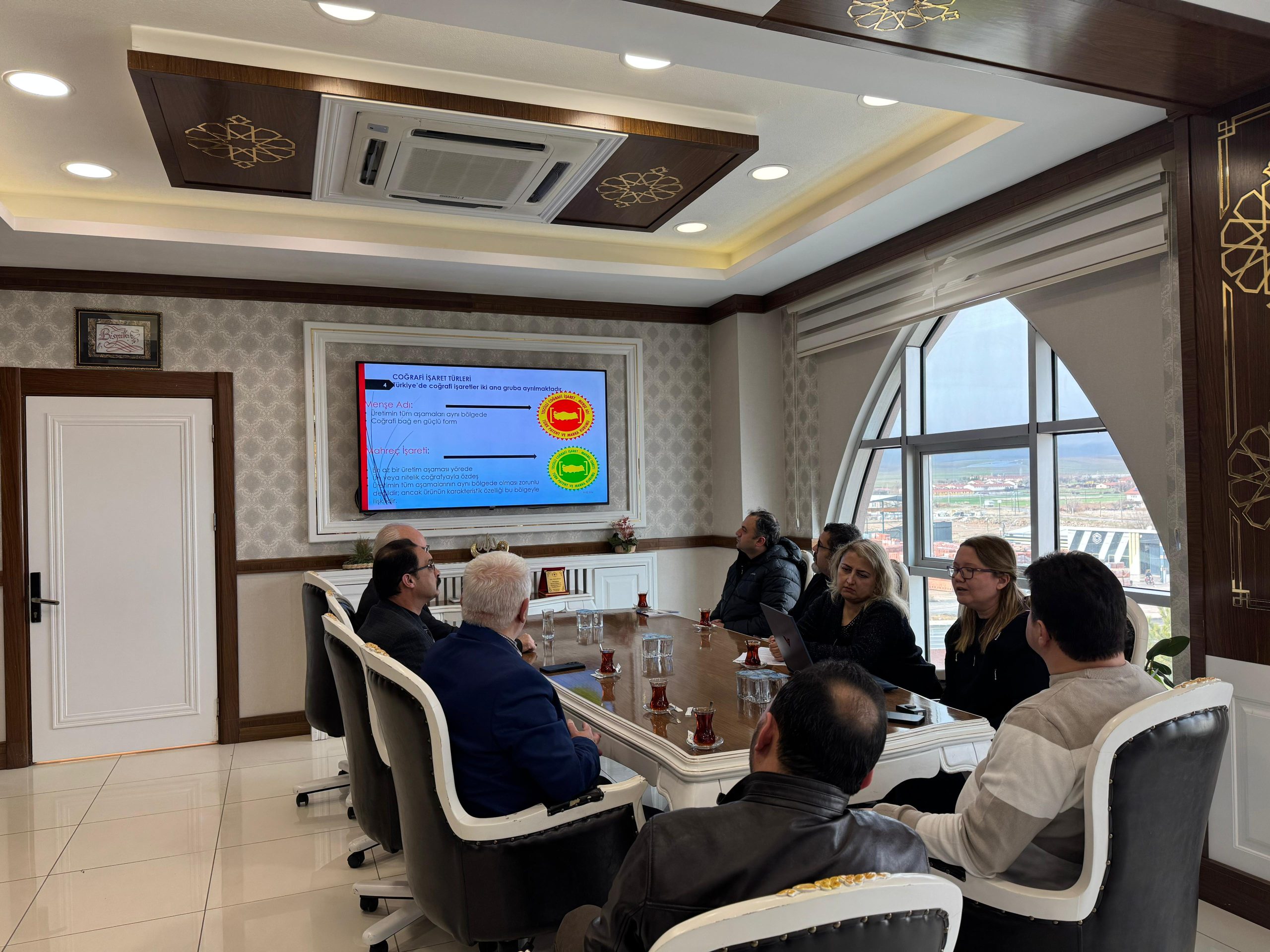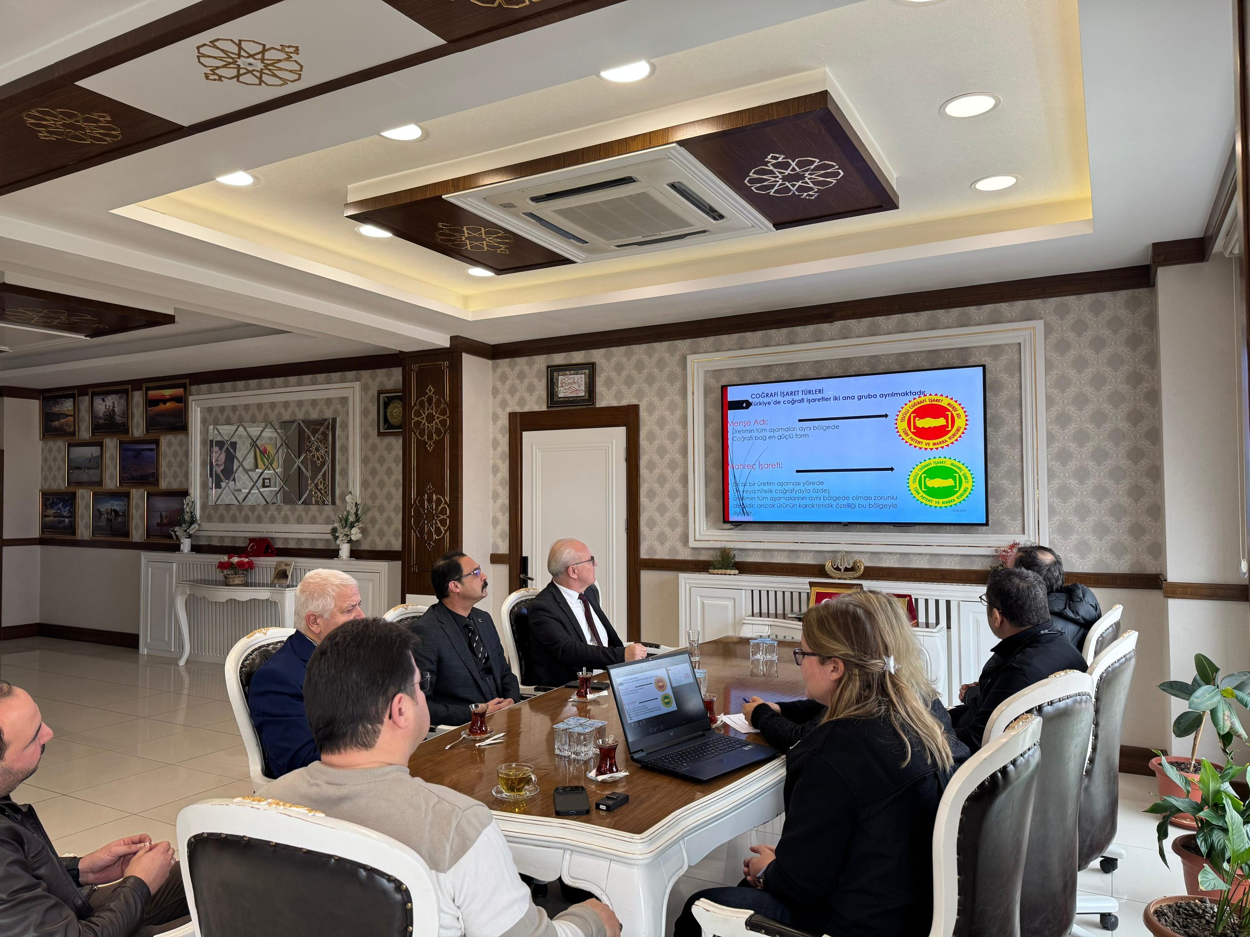 Bolvadin Meslek Yüksekokulu yönetimi ve akademik kadrosu, Bolvadin Belediye Başkanı Sayın Derviş Aynacı’yı makamında ziyaret etti. Ziyarete; Yüksekokul Müdürü Prof. Dr. Hüseyin Bayrakçeken, Müdür Yardımcıları Dr. Öğr. Üyesi Fuat Öz ve Dr. Öğr. Üyesi Murat Keskin, Yüksekokul Sekreteri Mehmet Emin Demirörs ile Gıda Teknolojisi Bölümü öğretim elemanları Doç. Dr. Tuğba Dedebaş ve Öğr. Gör. Dr. Özlem Emrem Tür katıldı. Görüşme kapsamında, Gıda Teknolojisi Bölümü öğretim üyeleri tarafından coğrafi işaretli ürünlerin önemi, yerel ürünlerin tescil süreci ve coğrafi işaret başvuru aşamaları hakkında kapsamlı bir sunum yapıldı. Sunum sonrasında, Bolvadin’e özgü ürünlerin coğrafi işaret potansiyeli üzerine karşılıklı değerlendirmelerde bulunularak fikir alışverişi gerçekleştirildi. Yerel yönetim ile üniversite arasındaki iş birliğinin güçlendirilmesine katkı sağlayan ziyaret, iyi niyet temennileriyle sona erdi.